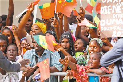 习近平主席的访问受到塞内加尔民众热烈欢迎。图为当地民众身着节日盛装,挥舞塞中两国国旗,载歌载舞,热情欢呼,欢迎习近平主席访问。