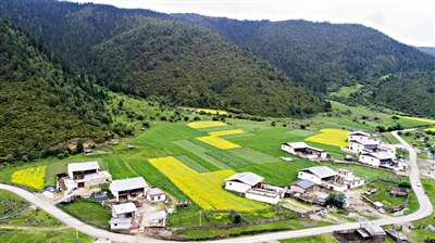 上图为普达措国家公园洛茸村一景(7月18日无人机拍摄)。新华社记者 胡超 摄