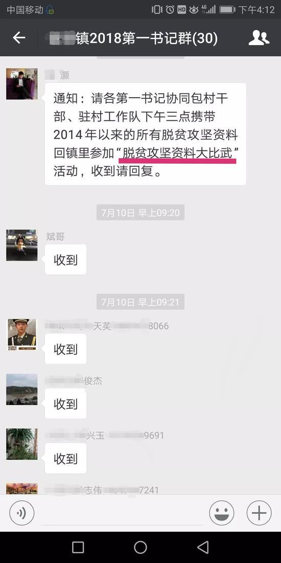 在中部某省一个乡镇,近日举办了一次“脱贫攻坚资料大比武”,活动要求各村第一书记协同包村干部、驻村工作队准备2014年以来的所有脱贫攻坚资料,到镇里进行比赛。