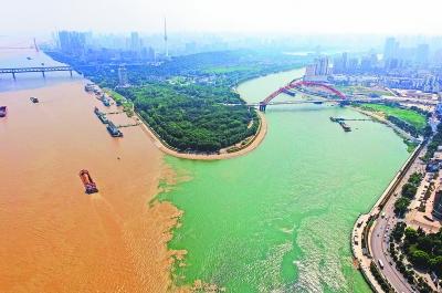 长江水利委员会工作人员解释称,两江交汇处分界明显的情况在每年涨水期都会出现。汉江所含泥沙量较长江少;在涨水期特别是雨季,长江水位提高使得水中的含沙量增加,江水因此呈浊黄色;而汉江江水相比之下则呈碧绿色,因此形成了明显分界。记者戴旻阳 李子云 摄影报道