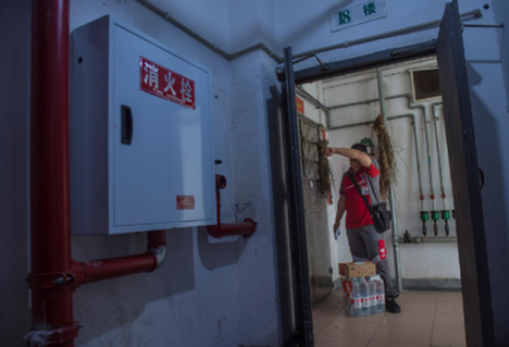 2018年7月25日,重庆纯阳洞,将客户购买的纯净水送到18楼,虽然是电梯,但黄正伟也热出了一身大汗。