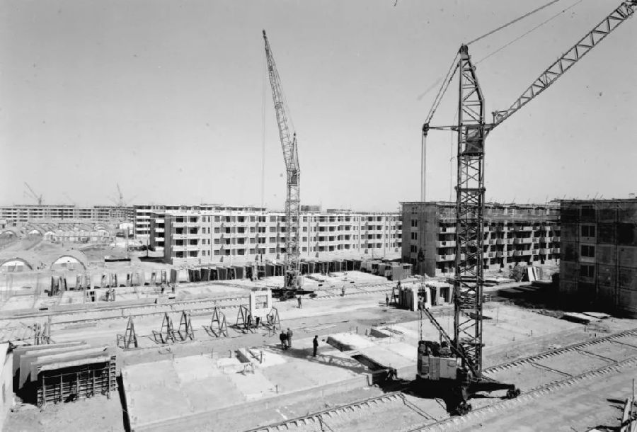 遭受强烈地震灾害的唐山在大规模重建。(1980年4月4日发)新华社记者 刘志伟 摄