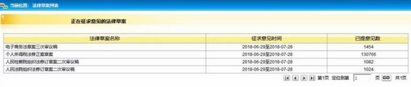 图为截至28日16时左右,中国人大网法律草案征求意见管理系统显示的《个人所得税法修正案(草案)》征求意见情况。