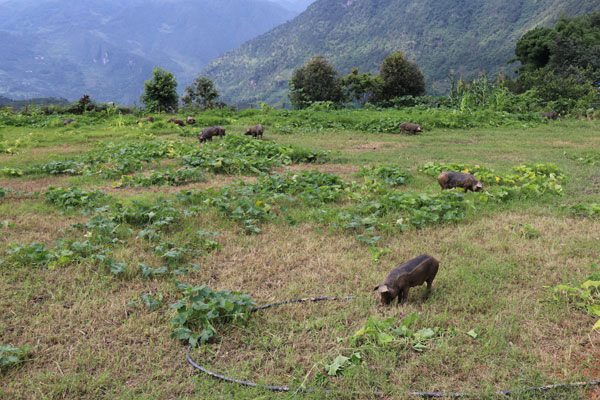 老尹说,如果光靠扶,自己不努力的话也没啥用。如果人家不扶了那你咋搞?当地人勤劳淳朴,他们夫妻愿意教当地人养猪。当地贫穷主要还是受地理位置的制约,他们有原生态的好东西,但卖不掉。如果考虑到保鲜、运输费用,卖到外地只能卖高价才能收回成本。