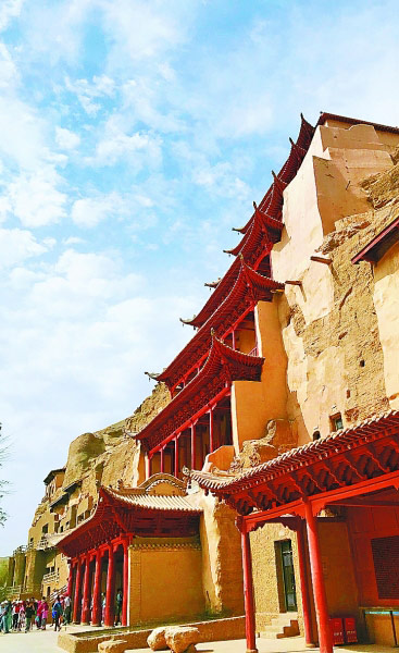 近年来,甘肃省紧抓“一带一路”机遇,发挥地处古丝绸之路要道的优势,通过出台旅游优惠政策、开展宣传交流、完善旅游服务等措施,使丝路游受到越来越多中外游客青睐。图为游客在有“沙漠中的美术馆”之称的莫高窟参观。斯诺摄/光明图片