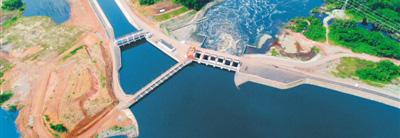 图为航拍的喀麦隆曼维莱水电站。该水电站由中国水利水电建设股份有限公司承建。(新华社发)