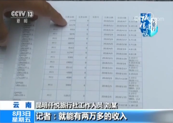 昆明仟悦旅行社工作人员 刘某:这个算挣得多的了。