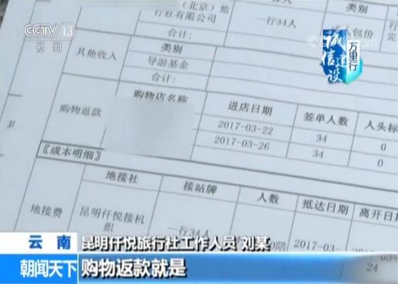 昆明仟悦旅行社工作人员 刘某:购物返款是旅行团进购物店,进了购物店以后客人买了东西,返给我们的款项