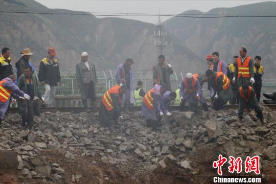 图为中铁兰州局集团公司职工在水害现场开展抢修工作。 宋佳龙 摄
