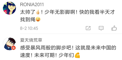 网友们纷纷留言:“太快了!计数都来不及!”“少年强则中国强!”