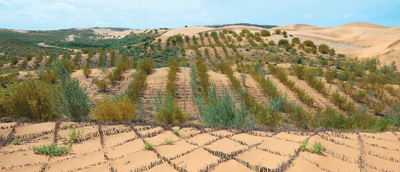 经多年努力,当地开发出“沙漠水气法种树技术”,只需10秒就能种一棵树,且树木成活率达90%以上。螺旋钻打孔法、甘草平移法等100多项沙漠生态技术成果,和“豆科植物大混交植物固氮改土”等100多种“沙漠生态工艺包”,将各种治沙难题各个击破。