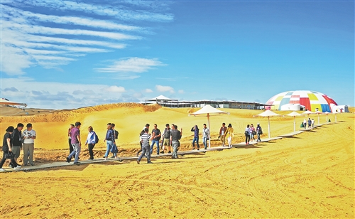 内蒙古鄂尔多斯市响沙湾是国内首个沙漠旅游度假景区,这里沙丘连绵不绝,一望无际。2011年响沙湾被评为国家5A级旅游景区,每年吸引众多中外游客前来游玩。本报记者 翟天雪摄