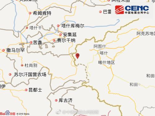中新网8月9日电 据国家地震台网官方微博消息,中国地震台网正式测定:08月09日04时19分在新疆克孜勒苏州阿克陶县(北纬39.12度,东经74.05度)发生3.6级地震,震源深度7千米。