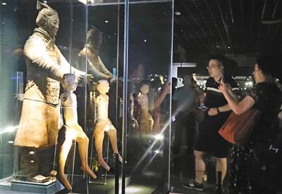 当秦俑和汉俑通过两两相望的形式展示在大家面前时,完美定格了2000多年前秦汉两朝的时代特征。 (首席记者 张佳 实习生 王祎玥)