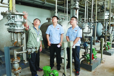 沧州市临港税务局工作人员到刚刚竣工投产的北京朗依制药有限公司沧州分公司了解生产情况,提供税收政策服务。傅新春 摄