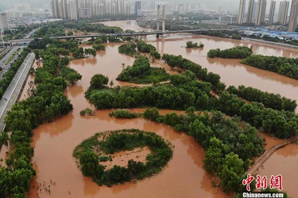 7月23日,黄河兰州段流量上涨,兰州银滩湿地公园被淹。(图片来源:中国新闻网)