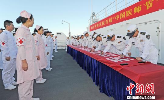 中新网努库阿洛法8月17日电 (江山 史奎吉 刘钰)“我庄严宣誓:自觉维护医学的尊严和神圣,敬佑生命,平等仁爱……”正在执行“和谐使命—2018”任务的中国海军和平方舟医院船8月17日在汤加医疗服务间隙,隆重举行重温《中国医师宣言》宣誓签名活动,喜迎首个“中国医师节”。