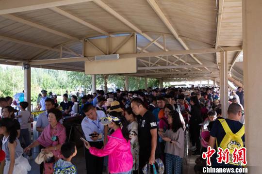 中新网甘肃敦煌8月18日电 (冯志军 艾庆龙)8月以来,世界文化遗产敦煌莫高窟经历了近40年来同期最大的客流冲击。无论是披星戴月的排队抢票,还是漫长焦急的等候参观,或是摩肩接踵的景区游览,一切都呈现出堪比“春运”的火爆场面。