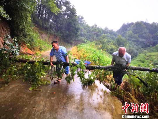 安徽省六安市霍山县村民展开自救,清理倒塌树木。 张金柱 摄