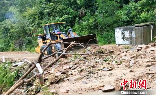 安徽省六安市霍山县对受损道路进行清理。 张金柱 摄