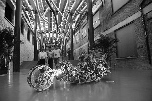 老旧厂房保护利用与城市文化主题展上展出的艺术品。北京晨报记者 王颖/摄