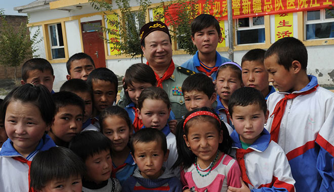 在武警新疆总队医院肝胆外科的走廊上,有一万多面锦旗,大家将这里称为“锦旗的海洋”。这其中,庄仕华印象最深的是一面写着“三十九载鱼水情,心系牧民一家亲”的锦旗。