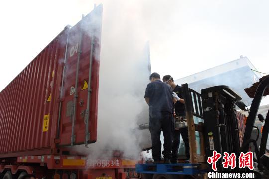图为工作人员对展品进行熏蒸处理。 钟建珊 摄
