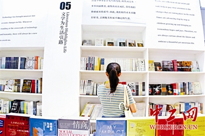 8月22日,读者在北京国际图书博览会上挑选图书。当日,第25届北京国际图书博览会暨第16届北京国际图书节在中国国际展览中心新馆开幕。工人日报-中工网实习生 王萌萌 摄