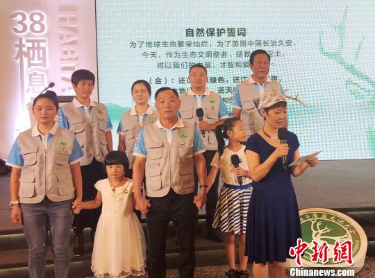 在8月24日举行的2018北京南海子麋鹿文化大会上,人们宣誓要“还山川以绿色,还江河以甘甜,还大地以生机,还天空以蔚蓝……” 赵帅宇 摄