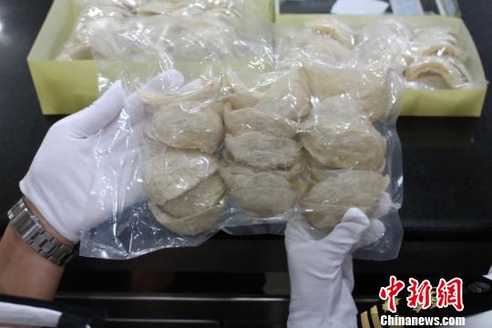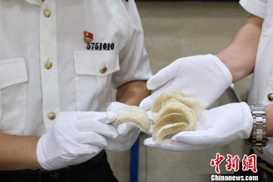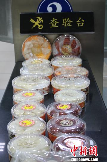 拱北海关今年在珠海拱北口岸查获违规入境燕窝同比增长74%。陈俊 摄