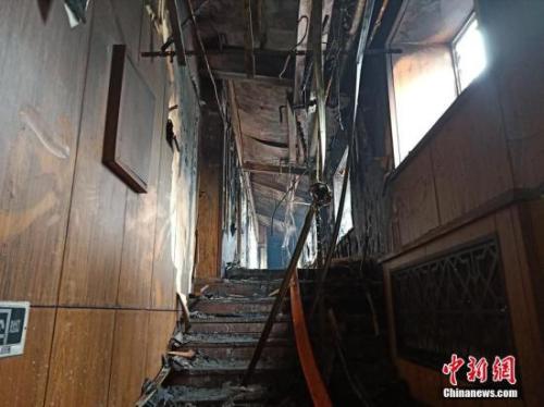 资料图:起火酒店一片狼藉。 解培华 摄