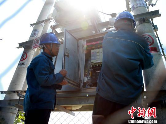 洪水来临时,寿光市绝大部分电路跳闸,部分损毁。8月25日,电力部门工作人员正在对该市纪台镇的部分电力装置进行维护。 沙见龙 摄