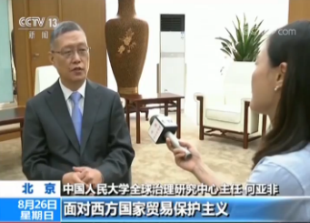 全球治理研究中心主任 何亚非:中非都是发展中国家,面对西方国家贸易保护主义反全球化、民粹主义上升,在这样的形势下,中非如何加强合作,维护现有的国际体系,现有的全球资源贸易体系,维护我们现有稳定的制度,中非的南南合作,中非之间的合作,政治上的,经济上的,都可以作出表率。