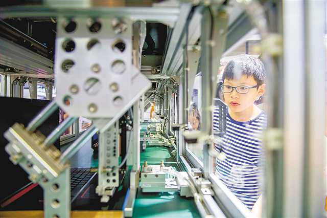 智博会重庆区县园区馆,笔记本电脑的AFT自动化测试线吸引了小朋友关注。