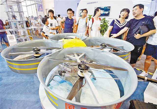 智博会重庆区县园区馆,硕大的消防用无人机吸引了市民关注。