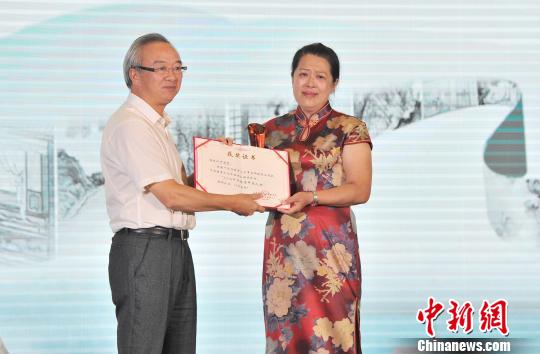 周秉德为“慈孝人物”李恩慧颁奖。 王刚 摄
