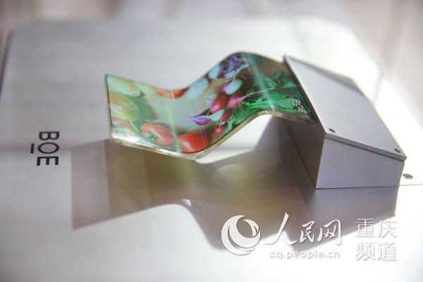 智博会上,京东方展出的可以随意弯曲、折叠的柔性AMOLED显示屏。刘政宁 摄