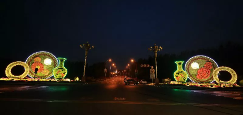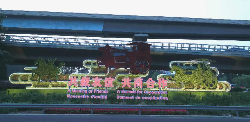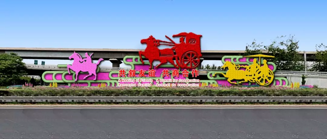 专机楼、四元桥布置“繁荣之花”、“车马迎宾”两组花坛,展现热情友好的喜庆氛围。