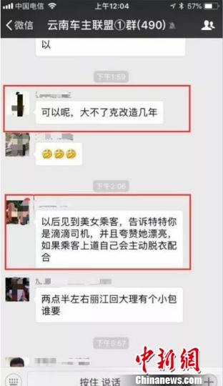中新网昆明8月28日电 (缪超)昆明市公安局28日晚发布消息,昆明网警巡查发现有4名网民在近500人的“云南车主联盟①群”微信群内,就浙江温州女孩乘坐滴滴顺风车遇害案件发表侮辱性言论,内容低俗、不堪入目,引起广大网民的强烈愤慨,造成不良社会影响,公安机关发现线索后立即开展调查工作。
