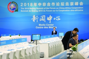 2018年中非合作论坛北京峰会将于9月3日至4日举行。届时,中非领导人将齐聚北京,围绕“合作共赢,携手构建更加紧密的中非命运共同体”主题,规划新时期中非合作“路线图”。 昨日,位于北京国际饭店建国国际会议中心的新闻中心启动试运行(左大图)。8月31日至9月5日,新闻中心将正式运行,届时2600多名中外媒体注册记者将在这里报道北京峰会的盛况。