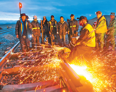 图为正在施工中的青藏铁路格拉段。本报记者 王锦涛摄