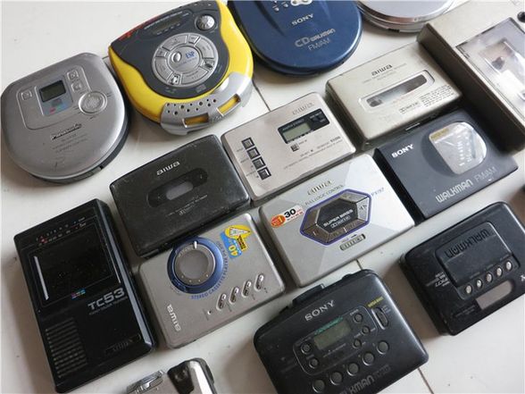 随声听里放着磁带,边走边听,是那个年代的街头一景。