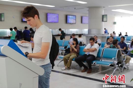 外籍人士正在上海市公安局出入境管理局内办理相关业务。 殷立勤 摄