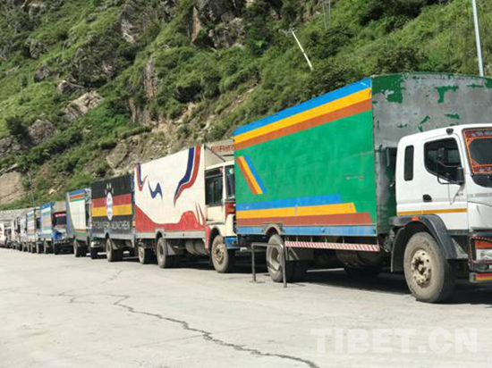 图为吉隆海关进出口的贸易车队(摄于2018年8月)