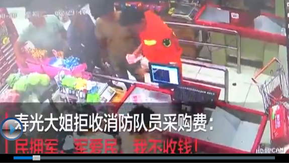 超市的老板娘说:“民拥军,军爱民,我不好收钱的……”(江苏广电融媒体新闻中心记者/毛俊 俞铭义)