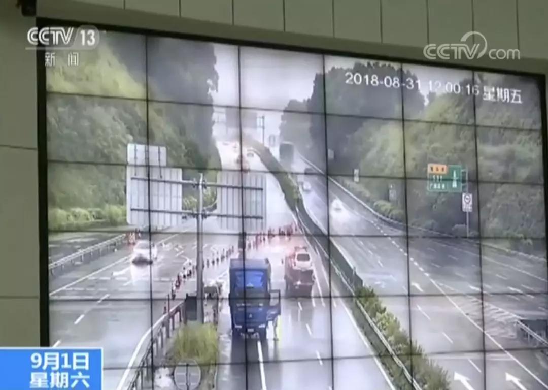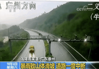 监控画面显示,8月31日上午,在广惠东延段K61公里处,当时一辆黄色小车刚刚驶过该路段,这里就发生了山体滑坡。