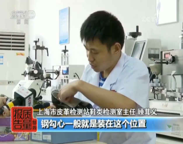 检测人员告诉记者,钢勾心这个项目并不是针对所有产品,要达到鞋跟高度大于20毫米以上,并且鞋跟口高度大于八毫米才会检测这一项目。钢勾心长度不够,无法起到支撑平衡的作用,穿这种鞋子走路,极易造成小孩的摔倒和扭伤。