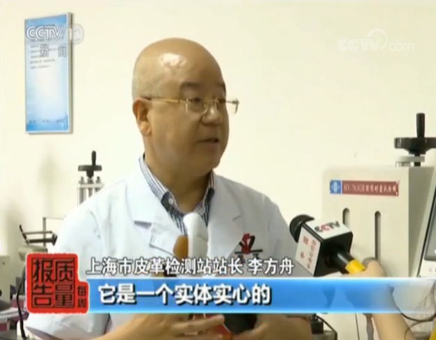 上海市皮革检测站化学检测室主任 俞峥阳:它是合成的,上面是合成革。就是下面一层布屐,上面一层其实就是合成材料,也是塑料的一种。
