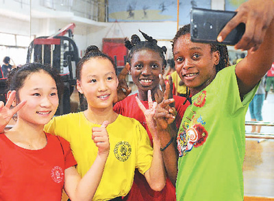 近年来,河北省吴桥杂技艺术学校吸纳怀有杂技梦想的非洲学员来此学习。图为9月2日,中非学员在交流活动中合影留念。