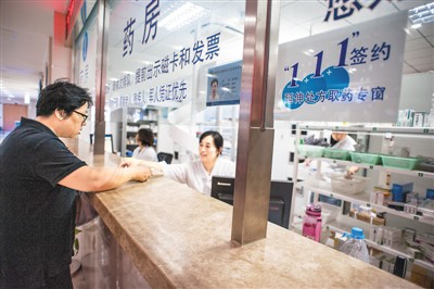 图为一名患者在上海某社区卫生服务中心药房取药。